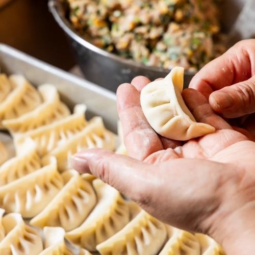 一つ一つ丁寧に手包みされた自家製餃子は、まさに芸術品!香ばしい焼き餃子と◎もちもち水餃子♪